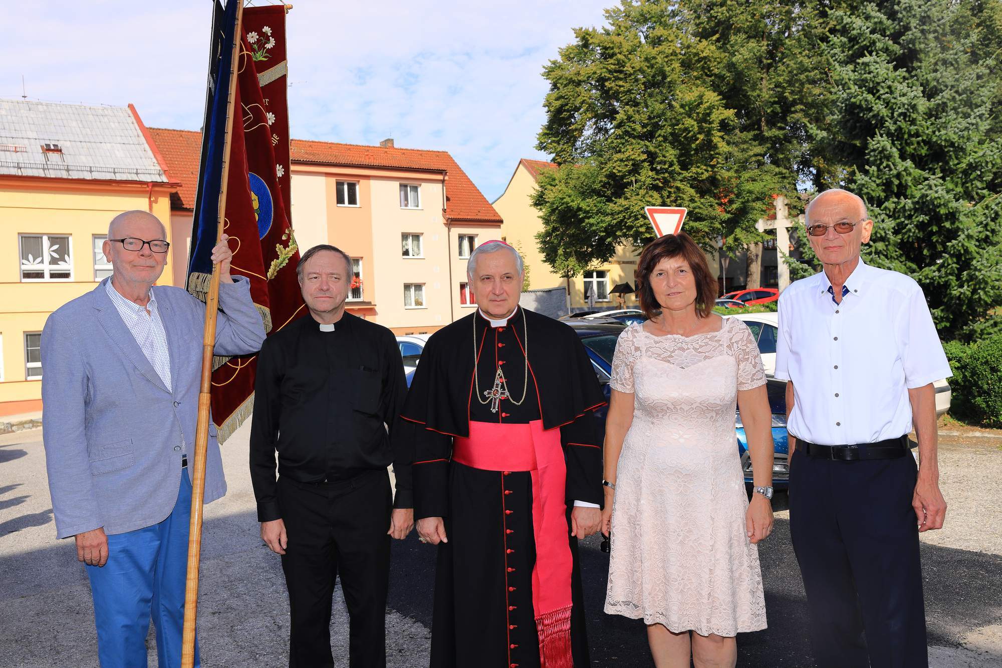 Neben dem Bischof: Frau Bürgermeister Alena Ševčíková und Herr Pfarrer Pavel Šimák